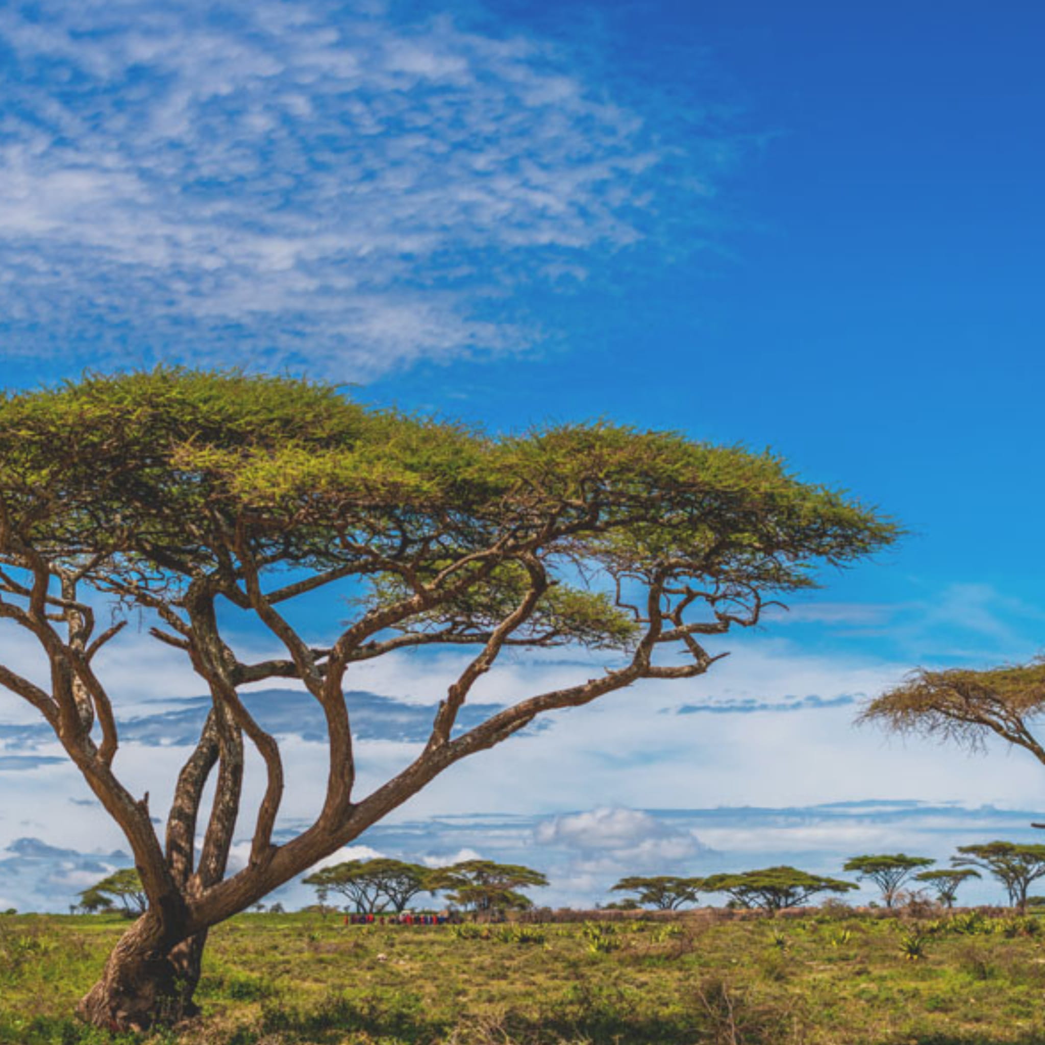 Acacia Tortilis, znana również jako Drzewo Cierniowe Parasolowe, to charakterystyczne drzewo sawanny pochodzące z Afryki oraz Półwyspu Arabskiego. Występuje na wysokościach od poziomu morza do 2000 m n.p.m. i wytrzymuje ekstremalne wahania temperatur – od niemal zera w nocy do 50°C w dzień. Jej parasolowaty pokrój z płaską, rozłożystą koroną jest jednym z najbardziej rozpoznawalnych elementów krajobrazu afrykańskiej sawanny.